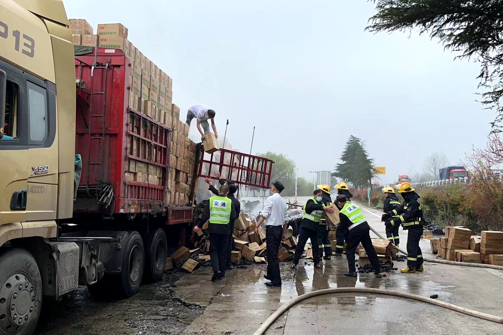 3月22日下午13時,一輛滿載木炭、冒著滾滾濃煙的大貨車突然駛入光山服務區。面對危急情況,服務區立即啟動應急預案,將車輛引導至降溫池,迅速組織員工進行滅火和搶救物資,同時撥打“119”請求支援。經過兩個小時的緊急救援,火情得到有效控制,成功挽回損失近50萬元,車主感…