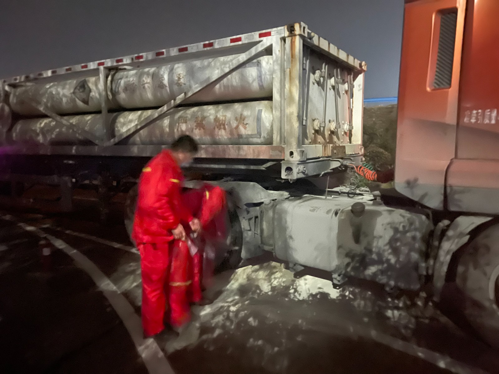 危化品車輛輪胎起火信陽服務區(qū)緊急處置成功排險