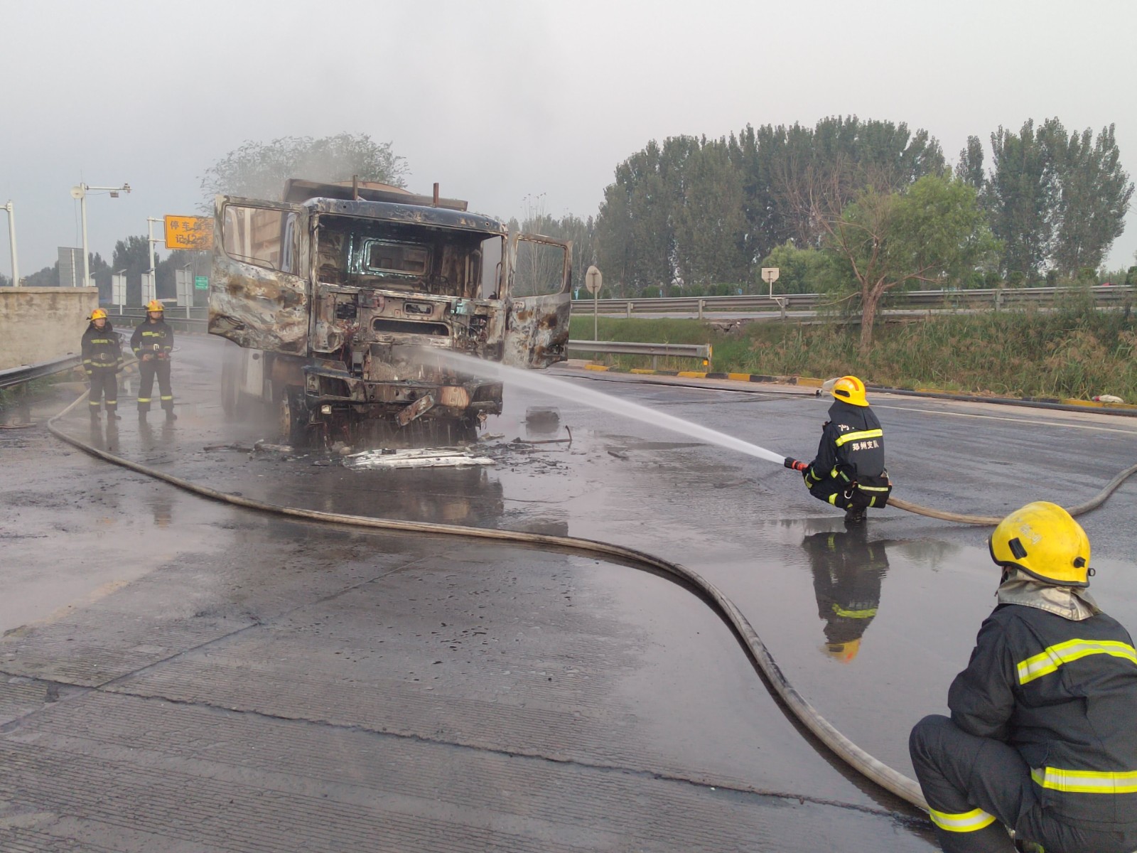 車輛自燃火勢(shì)危急 中牟服務(wù)區(qū)緊急救援