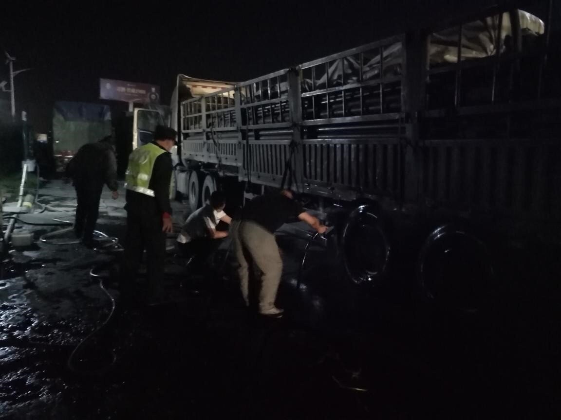 大貨車輪胎凌晨自燃 三門峽服務區(qū)果斷處置獲好評