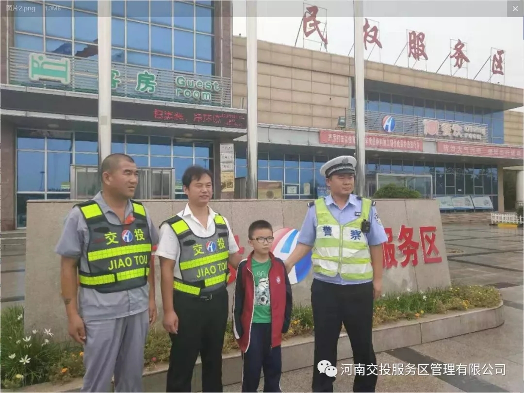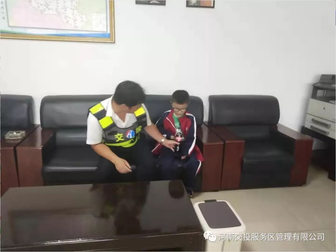 8月12日上午,民權(quán)服務區(qū)值班經(jīng)理在日常巡查過程中,發(fā)現(xiàn)一名身穿校服的孩子在服務區(qū)廣場邊哭泣邊尋找父母。 值班經(jīng)理見狀立即前去詢問,得知孩子和其父母去鄭州游玩,歸來途徑民權(quán)服務區(qū)去衛(wèi)生間時走散。值班經(jīng)理馬上向服務區(qū)經(jīng)理匯報,經(jīng)理聞訊當即將孩子帶至值班室休息,并拿來飲料、零食安撫孩子情緒。通過耐心溝通,孩子情緒慢慢平復,并回憶起了家長的電話。工作人員立即與其父母取得聯(lián)系,孩子的父母此時也心急如焚,得知孩子已被服務區(qū)工作人員妥善安置,激動萬分,十分感謝服務區(qū)的熱心幫助。此時孩子父母已經(jīng)回到商丘,為了讓孩子第一時間與父母團聚,民權(quán)服務區(qū)經(jīng)理王德波立即聯(lián)系值班高速交警,請他們協(xié)助幫忙把孩子送回父母身邊。 中午時分,服務區(qū)接到孩子父母和高速交警領導反饋電話,告知孩子已經(jīng)安全和父母團聚,對服務區(qū)熱心幫助表示感謝。