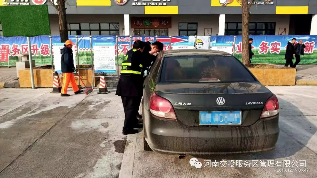 12月19日,漯河服務(wù)區(qū)值班人員發(fā)現(xiàn)一位年邁的老人正吃力的推著坐在輪椅上腿腳不便的老伴,工作人員迅速上前幫助,并問清需求。及時將老人送至第三衛(wèi)生間,待老人如廁后,又將老人安全送至車上,受到兩名老人及過往司乘贊賞。12月19日,一名司機(jī)大意將車鑰匙反鎖在車內(nèi),駐馬店服務(wù)區(qū)值班監(jiān)管袁向偉熱心幫忙,及時幫助車主打開車門,將車主的損失降到了最低。車主連連道謝,為服務(wù)區(qū)主動排憂解難的精神表示感謝。